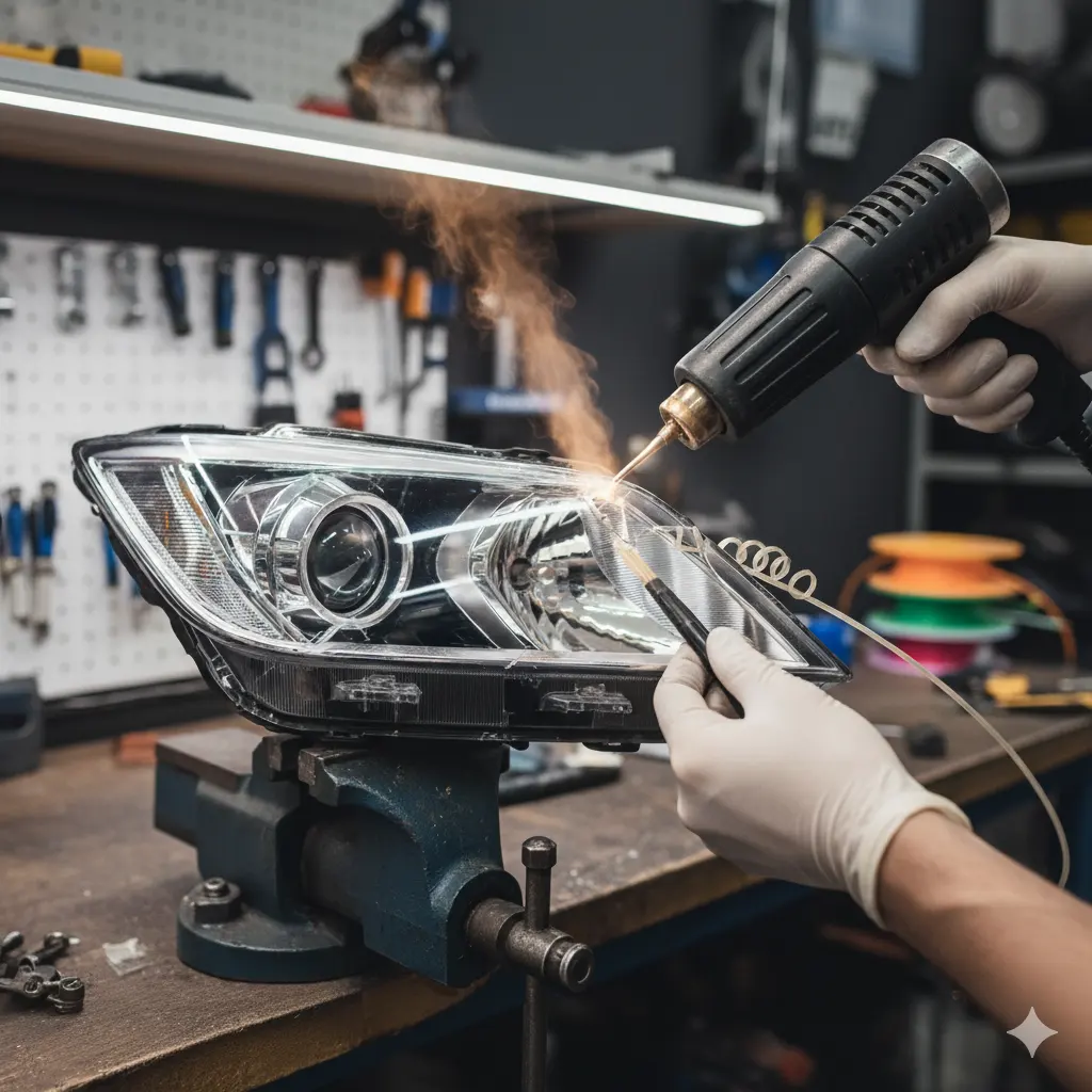 Physical damage, wear, and tear can compromise your headlight's integrity and performance. Our specialized plastic welding service offers a robust and seamless solution for repairing cracked mounts, broken shells, and damaged casings. We restore the original structural strength and perfect alignment, ensuring maximum longevity and safety for your vehicle's lighting system.